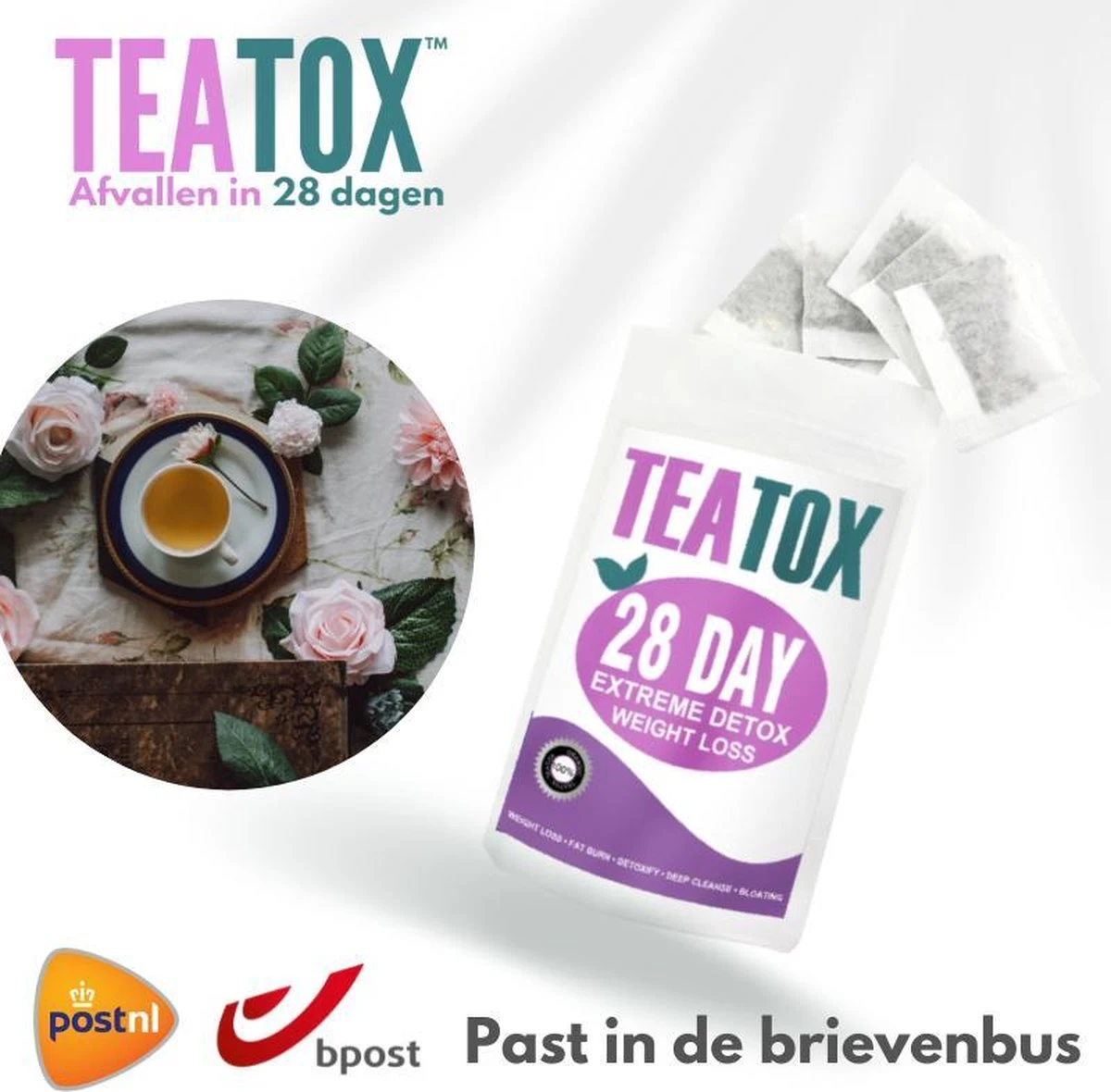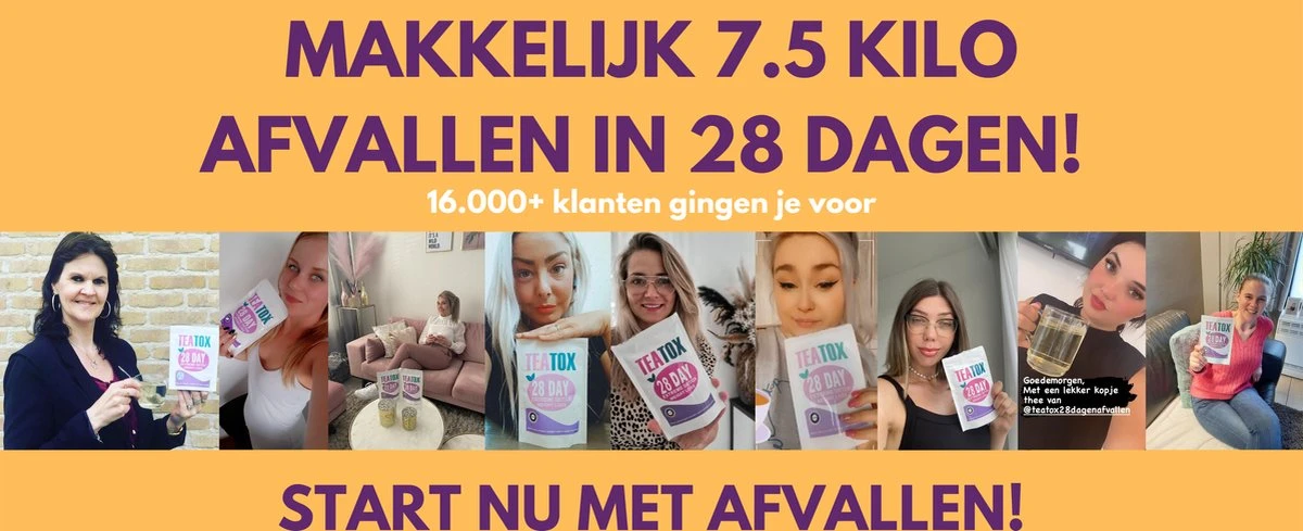 6 jaar ontwikkeling heeft geleid tot deze 100% natuurlijke TeaToxâ„¢ afslank thee. 2 kopjes TeaToxâ„¢ afslank thee per dag verhoogt je stofwisseling en vetverbranding met wel 600% en zorgt ervoor dat je enkele kilo”s afslankt.