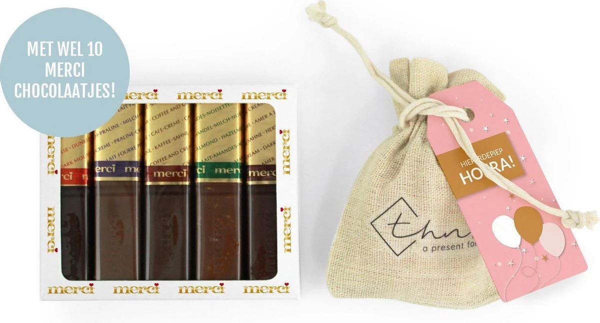 Met dit THNX 3-in-1 combinatie cadeau zit je altijd goed! Je geeft namelijk altijd iets leuks, iets lekkers in combinatie met een leuke kaart.
