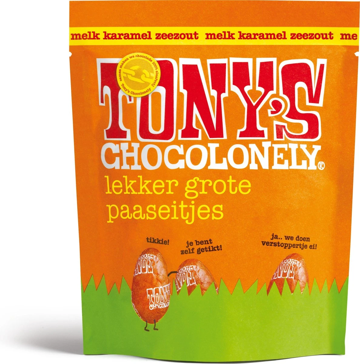 Tony’s Chocolonely Paaseitjes Melk Karamel Zeezout Uitdeelzak Pasen